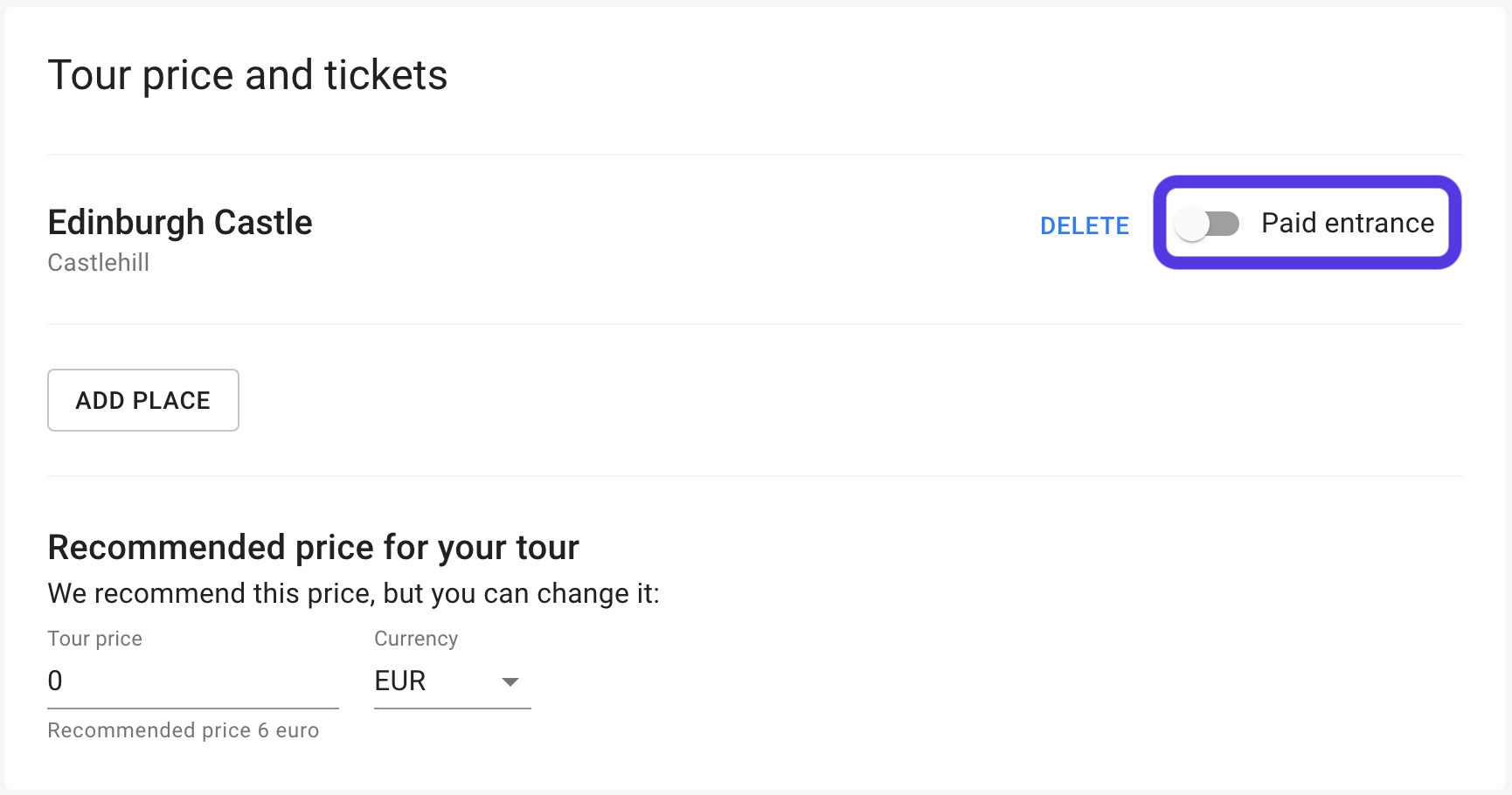Specify the tour's retail price that will be paid by the traveler. Remember that audio tours always cost less than guided tours because they pay off through a larger number of copies sold. The average price for a walking audio tour is 10 EUR/ USD but you may set the price that you think is most appropriate for your city and, if necessary, our moderators will suggest you adjust it.